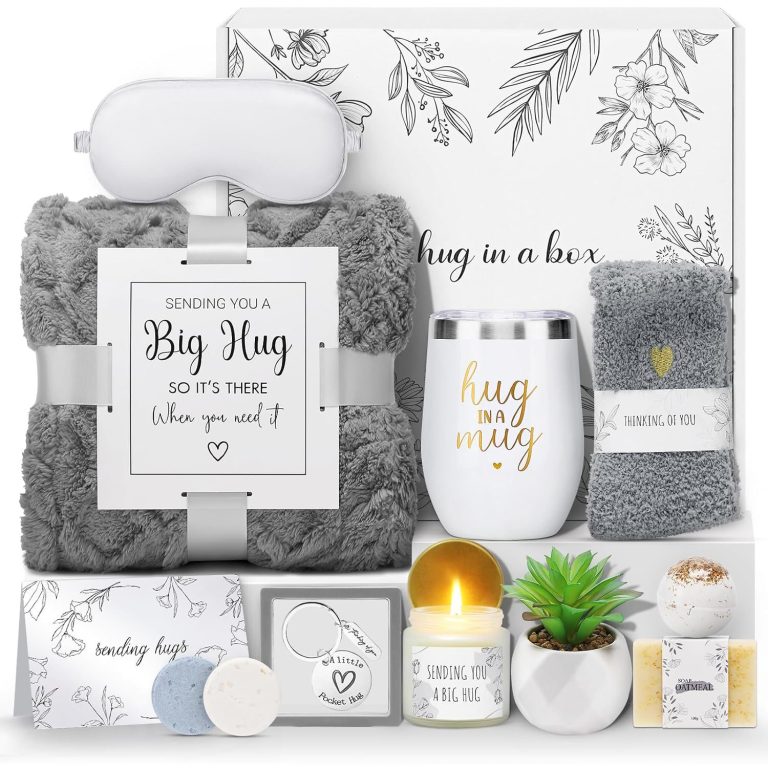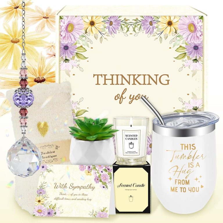 Cuando las palabras no son suficientes, este regalo de condolencias es un gran complemento. Cada pieza de la caja de regalo es cuidadosamente seleccionada e incluye un vaso aislado de 12 onzas, vela perfumada a fresia, calcetines de forro polar de coral, suculentas artificiales, colgante de cristal atrapa luz y una tarjeta de condolencias. La caja de regalo está exquisitamente diseñada y bien combinada, lo que la convierte en un regalo de condolencias reconfortante
