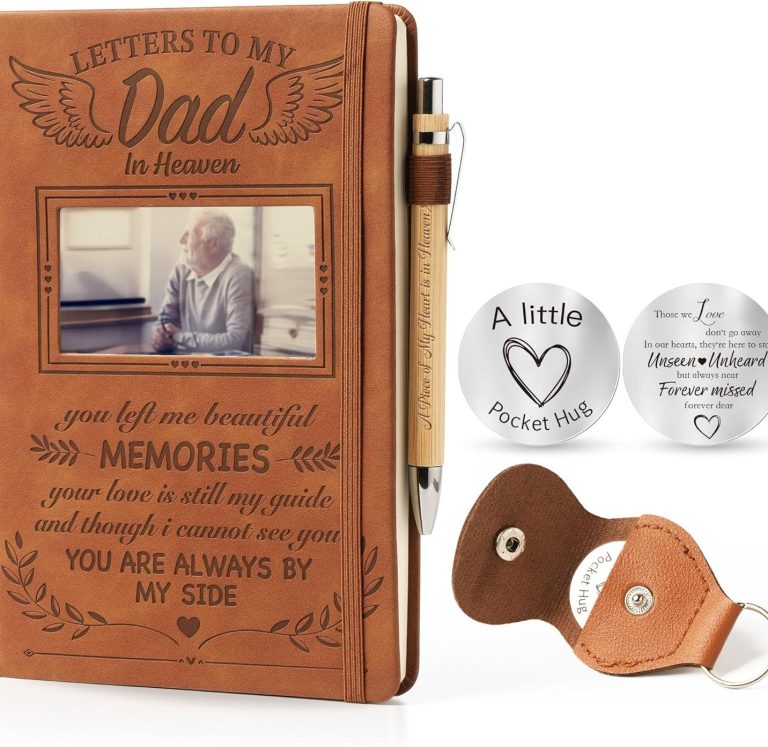 Cuaderno de Cartas a mi Papá en el Cielo. Un abrazo del cielo, escribe tu camino hacia la curación: cuando las palabras fallan, deja que este diario de cuero sintético de lujo sea su voz. Las páginas rayadas guían las letras a la Padre en el cielo, mientras que el bolígrafo de madera grabado se convierte en una herramienta ritual para liberar el dolor. Este producto está patrocinado en Amazon. Más info en el enlace.