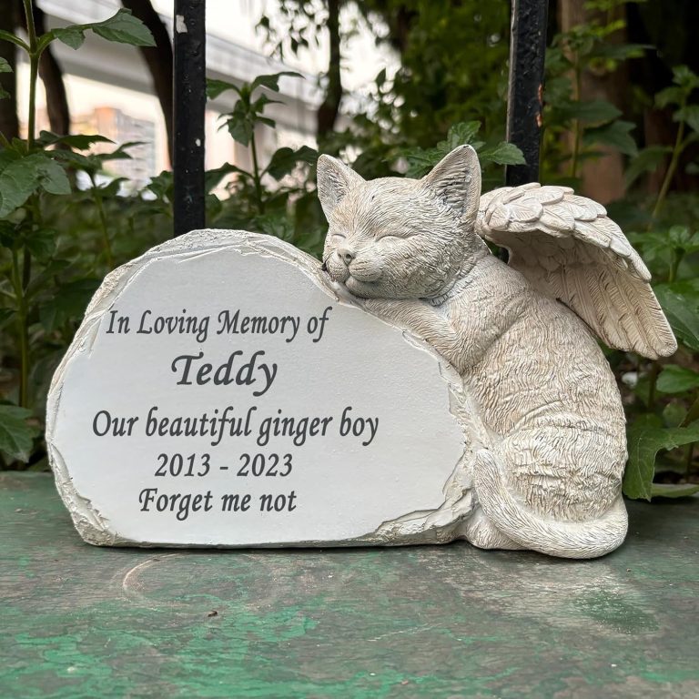 El duelo de la mascota es muchas veces minimizado. Pero el amor a una mascota es especial. Puedes honrar y hacer un ritual de despedia a ese compañero de vida y recordarlo con amor. Esta figura de gato de resina es hermosa para tu actividad de despedida, colocarla en el jardín, Etc.